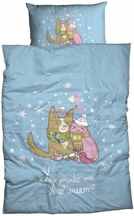 Casatex Fein Biber Bettwasche Kinder Bettwasche You Make Me Feel Warm 155x220 Cm Hund Katze In Love Blau Amazon De Kuche Haushalt