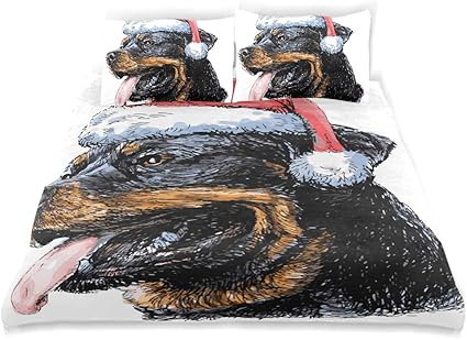 Sunop Biber Bettwasche Set Fur Doppelbett 100 Geburstete Baumwolle Bettbezug Und 2 Kissenbezuge Rottweiler Hund Mit Weihnachtsmannmutze Amazon De Kuche Haushalt