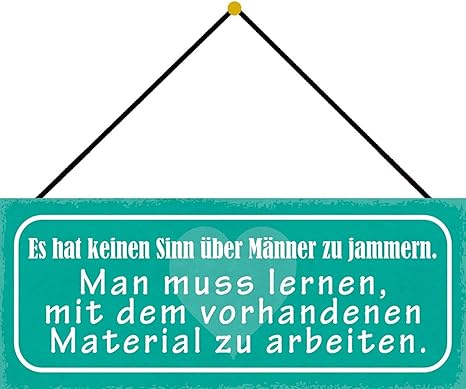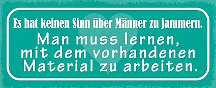 Nwfs Es Hat Keinen Sinn Uber Manner Zu Jammern Man Muss Lernen Mit Dem Vorhandenen Material Zu Arbeiten Blechschild Metallschild Schild Metal Tin Sign Gewolbt Lackiert 10 X 27 Cm Mit Kordel