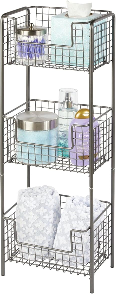 Mdesign Freistehendes Badregal Aus Metall Rostfreies Badezimmer Regal Mit Drei Korben Fur Handtucher Grau Shampoo Und Seife Auch Zur Kuchenaufbewahrung Geeignet