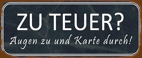 Schild Spruch Zu Teuer Augen Zu Karte Durch 27 X 10 Cm Blechschil 7 99