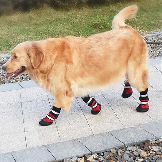 Hunde Mittlere Und Grosse Hunde Petsola 4er Pack Hundeschuhe Pfotenschutz Anti Rutsch Atmungsaktiv Hunde Stiefel Haustier Schuhe Fur Kleine Haustier Agb Lv