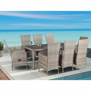 Rattan Gartenmobel Set Mit 8 Stuhlen Grau Esstisch Gartentisch 200 Cm Sitzgarnitur Supply24