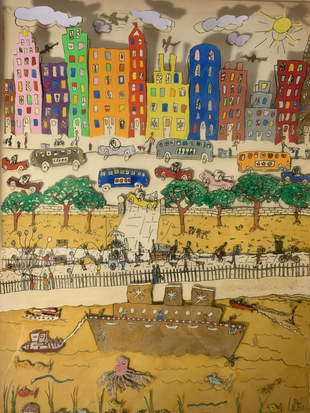 James Rizzi ist ein amerikanischer Künstler der durch seine naive Kunst überzeugt. James Rizzi wurde berühmt durch die von ihm entwickelten 3D-Papierskulpturen deren kindlich-verspielte Figuren und leuchtende Farben zu seinem Markenzeichen wurden. Es macht einfach Spaß sich seine Kunstwerke anzuschauen denn diese sind sehr fröhlich und man entdeckt immer wieder neue Details in seinen Bildern.